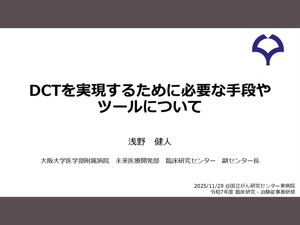 DCTを実現するために必要な手段やツール、工夫を、多くのDCTを実践されている大阪大学 浅野先生を招き、実施された臨床試験3試験を題材に解説して頂きました。