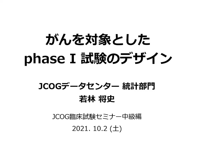 がんを対象としたphase I 試験のデザイン《講師:若林将史》