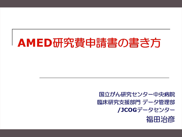 AMED研究費申請書の書き方《講師:福田治彦》
