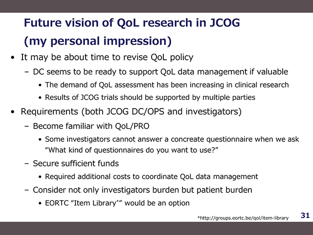 Summary of QoL/PRO assessment in JCOG studies《講師:Junki MIZUSAWA》