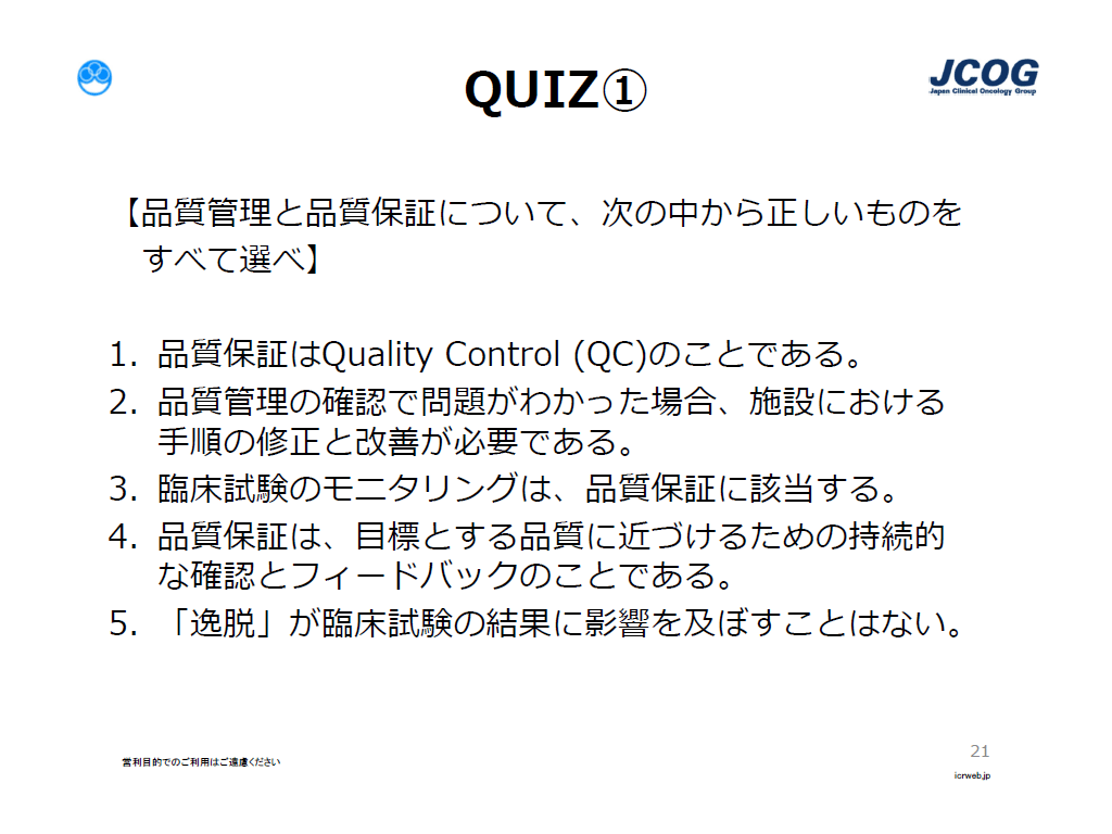 ご自身が携わる臨床研究は、どの規制・ガイドラインに基づいて行われるか理解していますか?なぜ、その規制・ガイドラインに基づいて行われているか説明できますか?隣に表示されているクイズに回答できますか? 治験と臨床試験の違い、医師主導治験や先進医療による新治療の開発戦略、指針と臨床研究法に従う試験の違いなどを丁寧に解説しています。 最新の情報は厚生労働省のHPなどでご確認ください。 「 2022年4月施行の研究倫理指針と個人情報保護法の改正について《講師:一家綱邦》」、「人を対象とする生命科学・医学系研究に関する倫理指針《講師:遠矢和希》」、「 臨床研究法の概要《講師:中濱洋子》」、「2022年4月施行の臨床研究法施行規則改正のポイント②《講師:西方修馬》」、「医師主導治験治験調整医師の業務(準備・実施編)《講師:秦友美》」、「 先進医療などの保険外併用療養の考え方~その歴史、仕組み、運用、出口や周辺制度など~《講師:真田昌爾》」、「臨床研究における研究責任者の責務《講師:沖田南都子》」なども履修してください。 途中にクイズを出していますので、その時間は動画を止めて、ご自身で回答してみてください。00:28:55