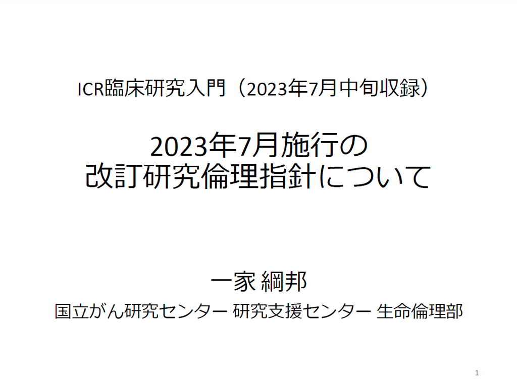 2023年7月施行の改訂研究倫理指針について《講師:一家綱邦》