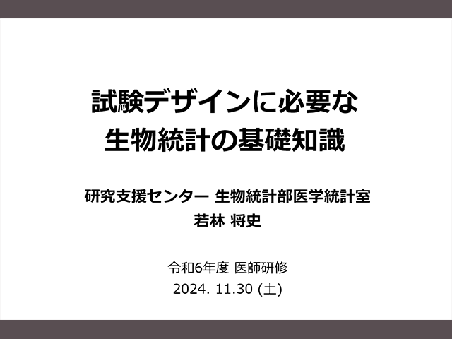 • 試験デザインに必要な生物統計の基礎知識《講師:若林 将史》