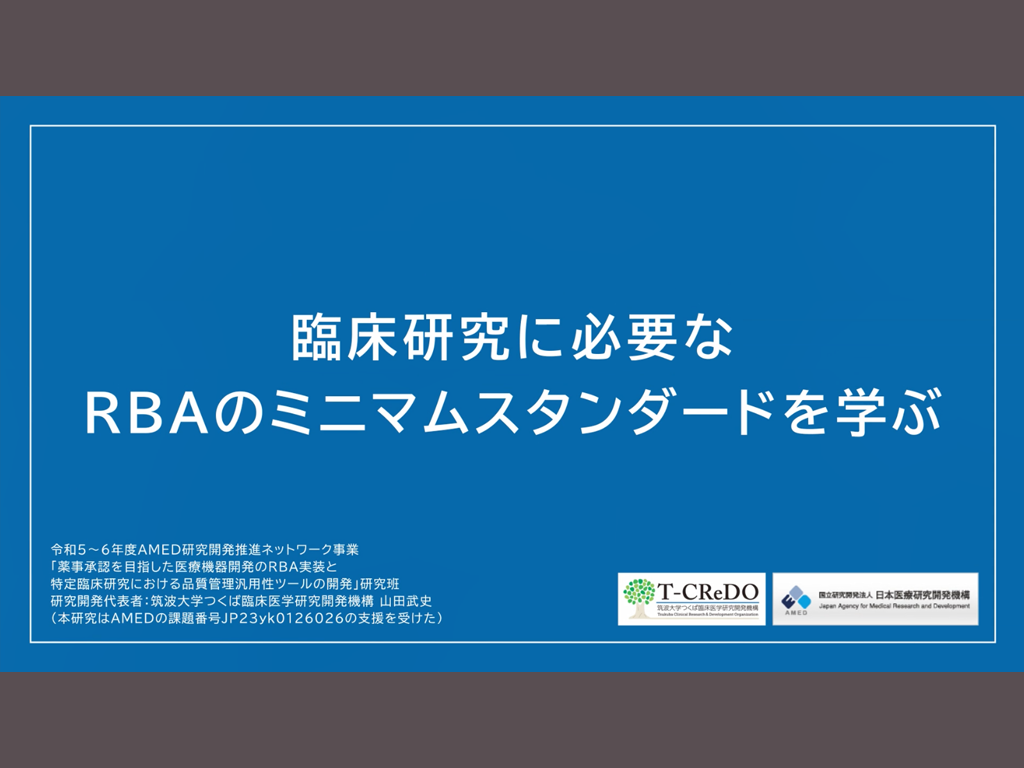 • 臨床研究に必要なRBAのミニマムスタンダードを学ぶ