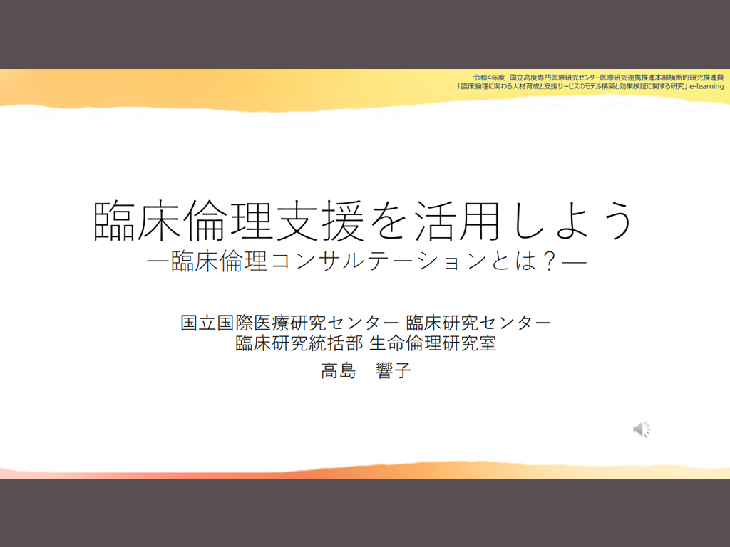• 臨床倫理支援を活用しよう ー臨床倫理コンサルテーションとは?ー《講師:高島 響子》