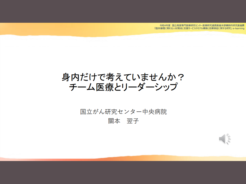 • 身内だけで考えていませんか? チーム医療とリーダーシップ《講師:關本 翌子》
