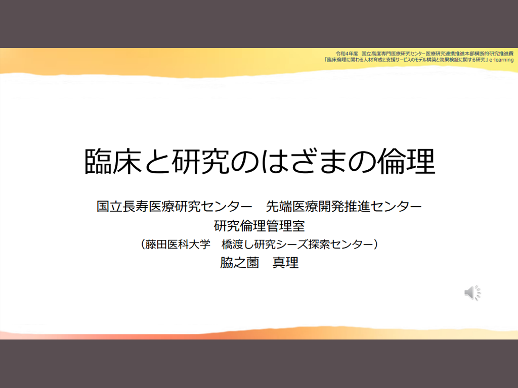 • 臨床と研究のはざまの倫理《講師:脇之薗 真理》