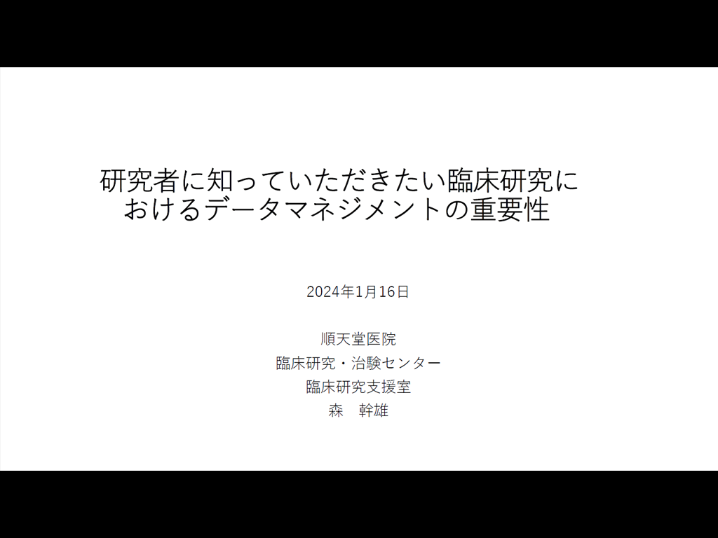 • 研究者に知っていただきたい臨床研究におけるデータマネジメントの重要性《講師:森 幹雄》