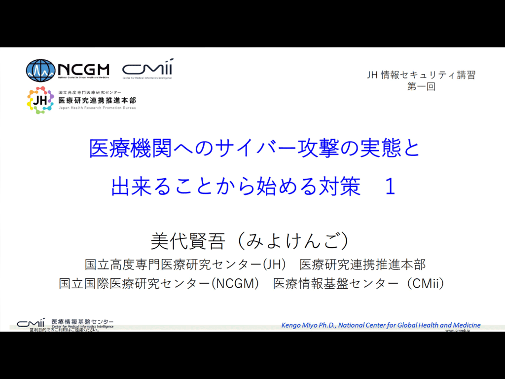 医療機関へのサイバー攻撃の実態と出来ることから始める対策1《講師:美代賢吾》