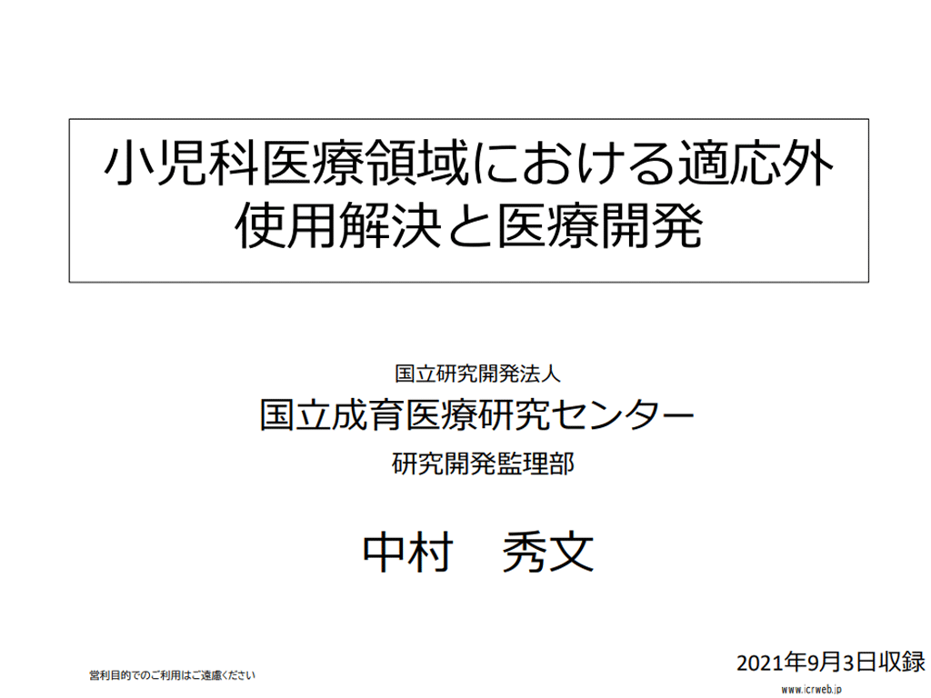 小児医療領域では医薬品や医療機器の適応外使用の頻度が極めて高い現状がある。製薬企業による治験等による正攻法による開発はもちろん、保険診療上その治療を使えるようにする取り組みなど、子どもたちに安全に医薬品・医療機器を使えるようにする方策を考える必要がある。本講義では、現在日本で活用することが可能な道筋について俯瞰する。また、小児医療領域においては、疾患の希少性による困難や、年齢による配慮の違いなどもあり、それらを念頭に医療開発を進めねばならない。小児における医療開発の留意点について例を挙げて説明を試みる。本コンテンツに関する問い合わせは、6NC共通教育講座中央事務局(