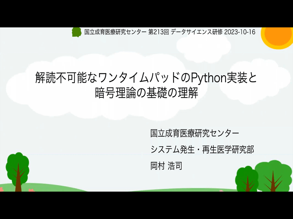 解読不可能なワンタイムパッドのPython実装と暗号理論の基礎の理解《講師:岡村浩司》