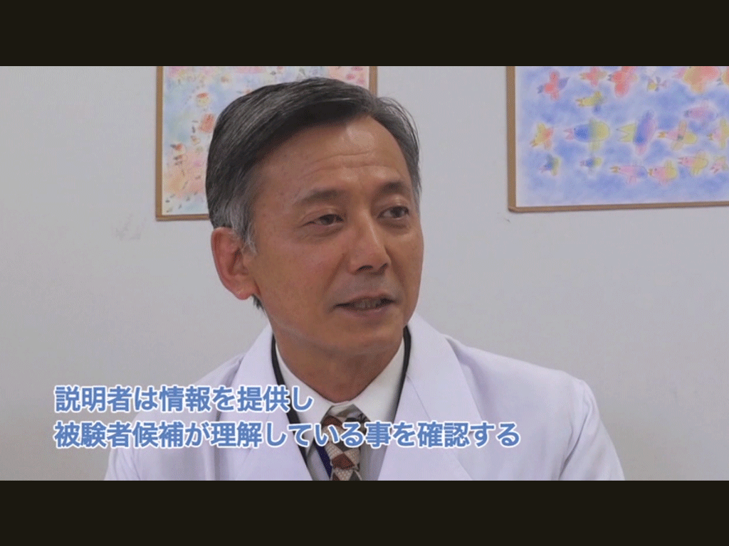 インフォームド・コンセントの基本的な要素と注意点について、自己間葉系細胞を使った第I相試験を例に説明しています。研究の手順を説明し、理解度の確認が出来たら、次ぎの段階では「自発性」の確認を行います。最後に課題が用意されていますので、じっくり考えてみてください。また、PDF資料p.32~p.37に、課題を議論するための手がかりが記載されていますので、参考にしてみてください。00:06:11